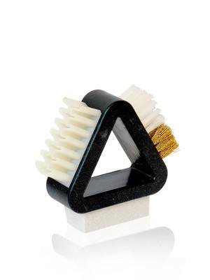 Čisticí kartáč 3 v 1 na semiš je profesionální kartáč na 4 funkce pro čištění semiše, nubuku, veluru. Kartáč obsahuje nubukovou suchou gumu, krepový kartáč, mosazný kartáč a nylon pro čištění kůže. Kartáč ve tvaru trojúhelníku s bočním rozměrem 6,5 cm.