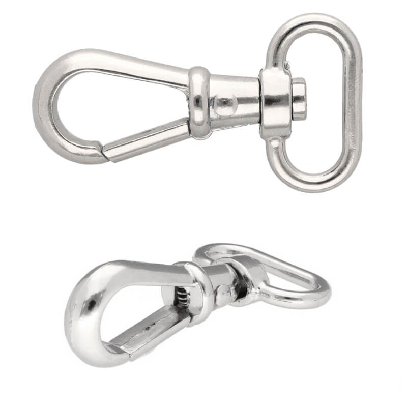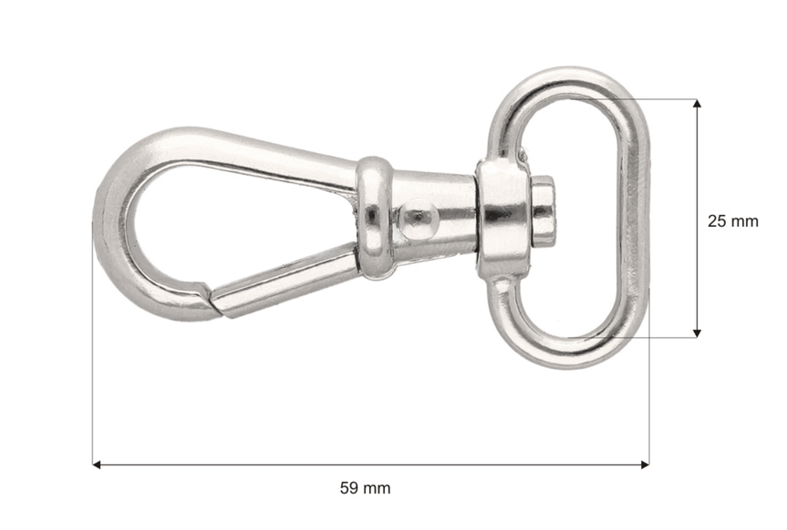 Kovová karabina na 25mm pásku stříbrná