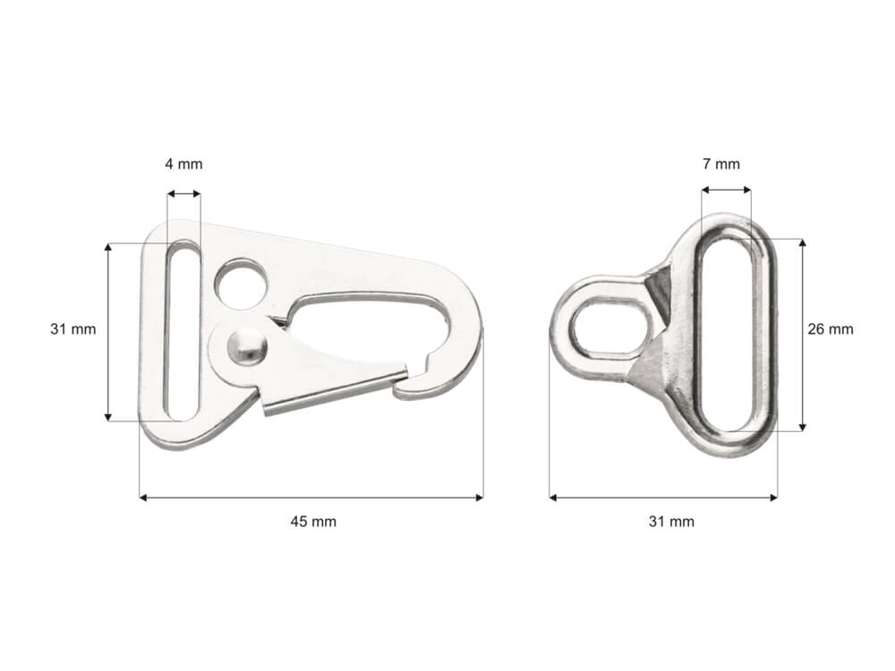 Kovová karabina plus rukojeť 24x64 mm stříbrná