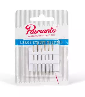 Sada 6 jehel pro ruční šití. Velké očko usnadňuje navlékání.